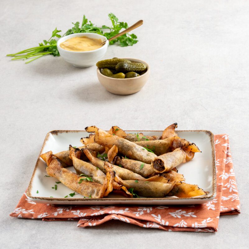 מיני סיגר אסאדו עבודת יד עם טחינה ירוקה.