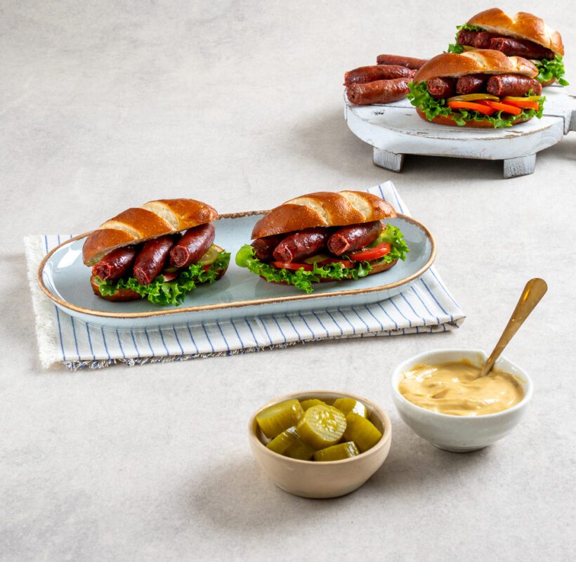 נגיסי לחמניית פרעצל עם מיקס נקניקיות מרגז וצ'וריצ'וס